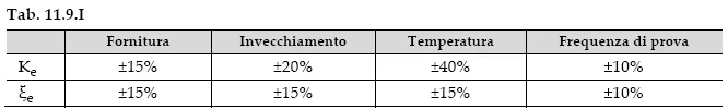 Le massime differenze tra le caratteristiche meccaniche ottenute nelle prove di qualificazione ed i valori di progetto o le normali condizioni d’uso devono essere contenute entro limiti riportati in Tab. 11.9.I