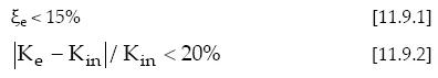 La linearità della risposta si riscontra accertando che il coefficiente di smorzamento viscoso equivalente sia minore del 15% e che lo scarto tra la rigidezza iniziale Kin, valutata come la rigidezza secante tra i valori corrispondenti al 10% ed il 20% della forza di progetto, e la rigidezza equivalente Ke, valutata come pendenza della secante tra i punti di massimo spostamento positivo e negativo in un ciclo completo, sia minore del 20% della rigidezza Kin (per i dispositivi a comportamento lineare la rigidezza del primo tratto K1 può essere assunta pari a Kin).