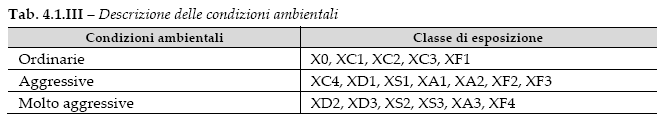 I calcestruzzi delle diverse classi di resistenza trovano impiego secondo quanto riportato nella Tab. 4.1.II, fatti salvi i limiti derivanti dal rispetto della durabilità.