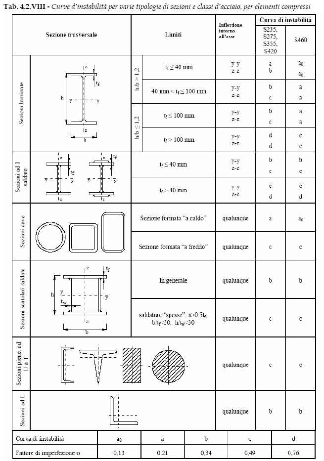 Per i casi più comuni delle forme delle sezioni e delle modalità di sollecitazione, le seguenti Tabelle 4.2.III, 4.2.IV e 4.2.V forniscono indicazioni per la classificazione delle sezioni.