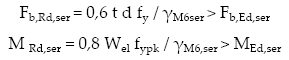 Qualora si preveda la sostituzione del perno durante la vita della costruzione, bisogna limitare le sollecitazioni di flessione e taglio sul perno e di compressione sul contorno dei fori. Per cui la forza di taglio ed il momento agenti sul perno in esercizio, Fb,Ed,ser e MEd,ser, devono essere limitate secondo le seguenti formule: