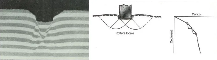 - Questo meccanismo di rottura è tipico di terreni poco deformabili (sabbie dense, argille consistenti) e fondazioni superficiali.