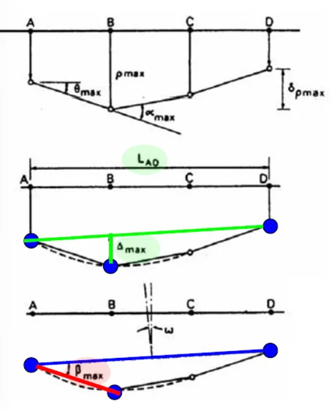 - distorsione angolare (β ≈ Δw/L): cedimento differenziale diviso per la distanza L tra i punti. È il parametro più critico per il danneggiamento.